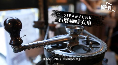 慢活使人想起一杯香濃的咖啡,店內有一部由縫紉舊衣車改裝而成的咖啡磨豆機, Stephanie 稱它為「STEAMPUNK 石磨咖啡衣車」,這個裝置由一個勝家衣車的底架,有中式的石磨和一些由木頭製成的鑽子,一些機器的零件加上舊單車的零件結合而成。這部全世界獨一無二的石磨咖啡衣車操作簡單,原用衣車的腳踏產生動力,磨出的咖啡豆品質則靠放咖啡豆和踏衣車的速度去決定。目的主要是讓大家感受到過程中機器的樂趣。