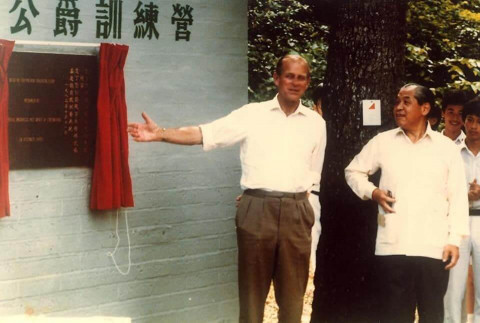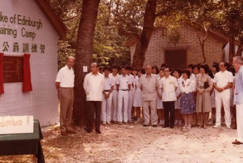 1986 年 10 月,菲臘親王到新界愛丁堡公爵獎勵計劃林村訓練營,主持牌匾揭幕儀式。
