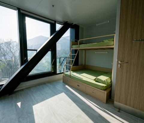 營地共有 177 個宿位可供入住,備有單人床及碌架床設計,分 2 人、 3 人及 4 人房家庭房,以及 18 – 26 人團體房及露營區,適合不同年齡的家庭及團體租用,設計簡約,具北歐風格,周邊景觀開揚,整體感覺舒適,與以往舊有宿營感覺大不同。