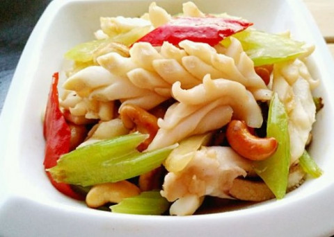 西芹花枝片的賣相有如花般美觀,因為是將花枝片(墨魚片)切紋,當加熱收縮後就會像花一樣。西芹花枝片的意頭一個十分形象化的名字,寓意錦上添花。