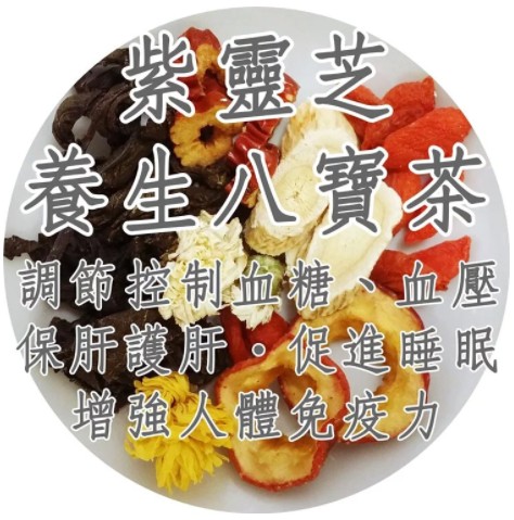 成份:紫靈芝、黃芪、杜仲茶、山楂、紅棗、貢菊、枸杞、皇菊