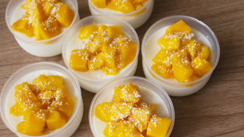 食甜品好多人都諗起芒果,貪佢有一股濃郁香氣,七月街市超市有最靚當造嘅台灣愛文芒果同金煌芒果,日本就有宮崎芒,隻隻酸甜香口,用嚟做夏日消暑甜品最啱。加上芒果向來有「熱帶水果之王」美譽,含有豐富維他命 A、維他命 C 同鉀,小朋友食幾杯香芒椰奶凍都唔怕!