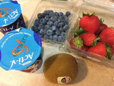 1. 把藍莓和奇異果洗淨,奇異果切片,士多啤梨去蒂後切粒。