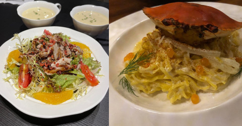 除了得寶商場,九龍灣寫字樓區都隱藏了美食小店,例如French Lab置身於一座較舊式工廈,但餐廳裝修就充滿歐陸式風格,很適合上班族忙裡偷閒,或晚上與朋友開懷大食!入去法國餐廳當然要吃法國餸,小編推薦油封鴨肉柳橙沙律、栗子松露濃湯及海鮮釀蟹蓋配手工意粉,尤其是後者,一定讓你「嘩」一色叫出來,意粉上有個完整的蟹蓋,每啖都是鮮蟹肉的味道,而手工意粉很有彈性,而且帶點煙韌,味道與賣相都一流。French Lab也提供私房菜和包場服務,這次私房菜的菜式靈感來自木村拓哉主演的「摘星廚神」,經過團隊不斷地嘗試,終於在木村拓哉的生日(Nov 13)成功舉辦第一場私房菜,而且客人的大獲好評。另外,這裡有單獨售賣油封鴨髀,它已經烹調處理,買回家後只需解凍,然後在煎鑊中加少許油用慢火煎每邊2-3分鐘,直至金黃色即可食用,省卻大量洗切工夫。你亦可買魚子醬,就算你在家「煮幾味」,也可將普通西餐變得法式風味。