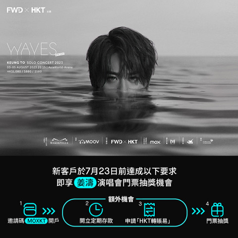 姜濤個唱一票難求,搶飛失敗又有什麼方法可以獲得門票呢?虛擬銀行Mox的新客戶和現有客戶,由即日起至2023年7月23日,只要完成有關要求,就有機會參加大抽獎,贏取姜濤演唱會門票2張,每張票價HKD1,080,新客戶名額80個,現有客戶名額20個。