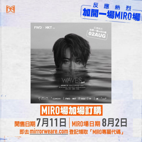 - 成功以「MIRO專屬代碼」購買8月3日場次的歌迷,今次將不會獲發「MIRO專屬代碼」。