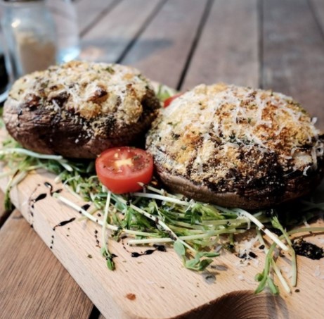 這間餐廳用上的大啡菇很大,釀有洋蔥、培根和菠菜,鋪滿mozzarella cheese,咬開多汁鮮味。