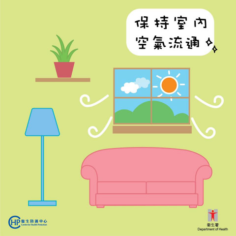 經常打開窗戶,保持室內空氣流通,使用風扇或抽氣扇,加強室內空氣流通。經常清洗冷氣機、抽濕機及空氣清新機隔塵網,並檢查冷氣機有否滴水。