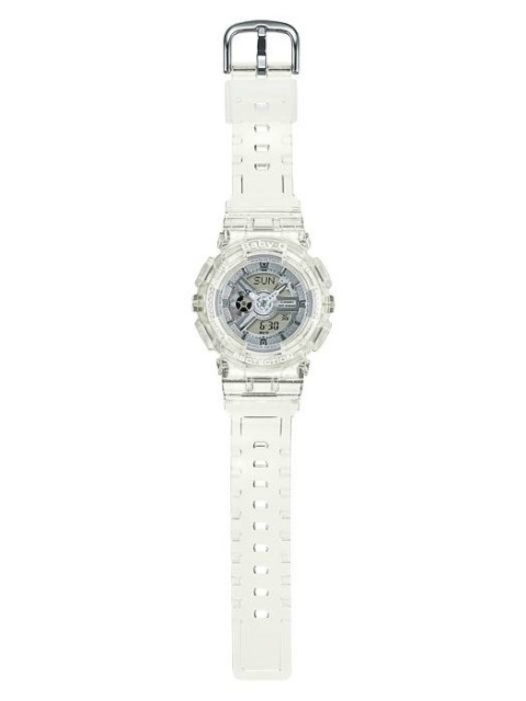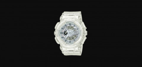 這款珊瑚白特別顏色型號手錶 (BA-110CR-7A) 採用半透明物料製成,以營造出令人聯想起地球美麗海洋的圖案,並襯托有珊瑚、魚類和其他海洋生物。珊瑚白代表白色的珊瑚,因為某些人相信白珊瑚具有超自然力量和治療功效,而 BABY-G 型號的 9 點鐘位置外圍亦採用了代表小丑魚的琥珀色。手錶規格方面,錶殼、錶圈和白色錶帶均採用樹脂物料,外型輕巧,配以 Neobrite 夜光塗料指針及 100 米防水功能,潛入百米深海也不是問題。