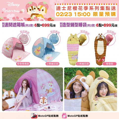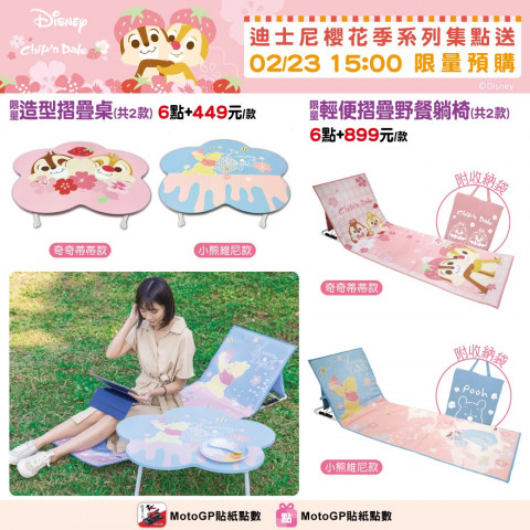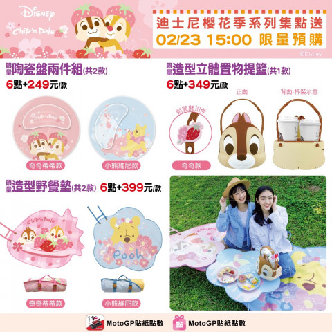 春天到,又到郊遊好季節。台灣 7-11 於 2 至 3 月便了進行「迪士尼櫻花季系列集點送」活動,以集點加錢換購小熊維尼和 Chip ‘n’ Dale 野餐用品,包括陶瓷盤、野餐墊、摺疊桌、帳幕、摺疊野餐躺椅、睡袋,以及無線藍牙耳機,款款精美又實用。