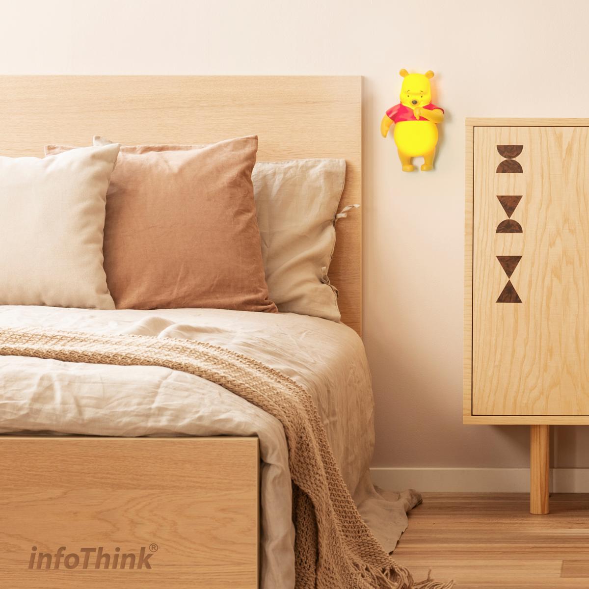 台灣出品的小熊維尼拍拍燈是由迪士尼正式授權生產,採用觸控開關,只要輕拍維尼的大圓肚就會著燈。拍拍燈有三種光度調節,可放床邊作夜燈功能,而隨燈附贈的 3M 魔術貼,亦方便用家將燈固定在牆上或放在桌上使用。