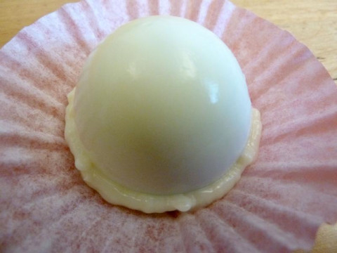 1. 把蒸熟好的水煮蛋切半,每一份放入杯子蛋糕的紙模型中