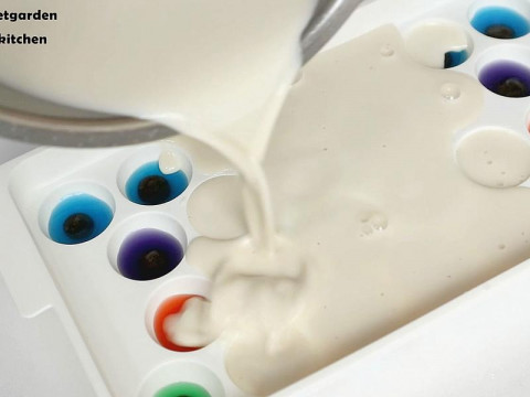 3. 準備一個小球體的模具,將煮好的糖跟吉利丁溶化