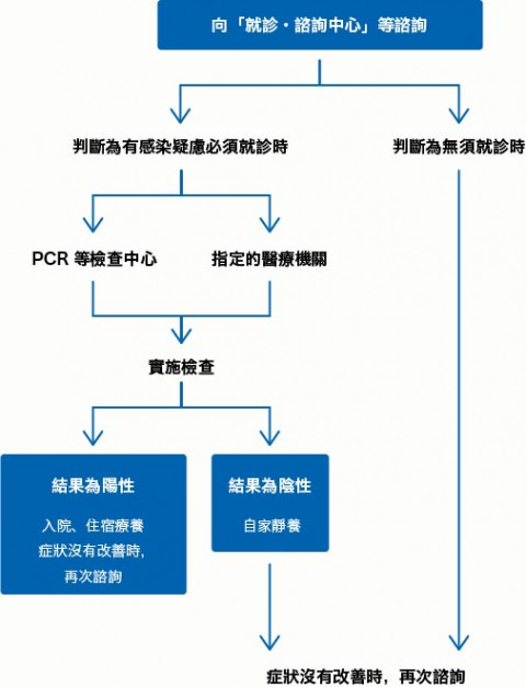 答:日本當局建議疑似患者切勿直接前往醫療機關,應先向當地的「就診・諮詢中心」進行諮詢。當該中心認為求診者可能受感染時,會安排求診者到醫療機構或檢查中心接受適當診療。想知日本各都道府縣「就診・諮詢中心」資料,可按以下連結:https://www.c19.mhlw.go.jp/area-ct.html