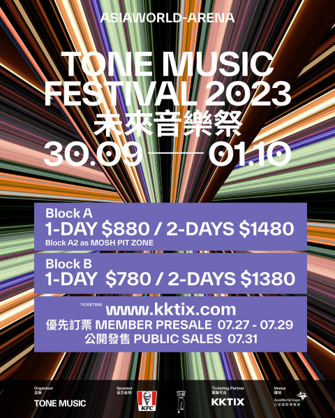 單日門票:BLOCK A1/A2/A3|HK$ 880、BLOCK B|HK$780