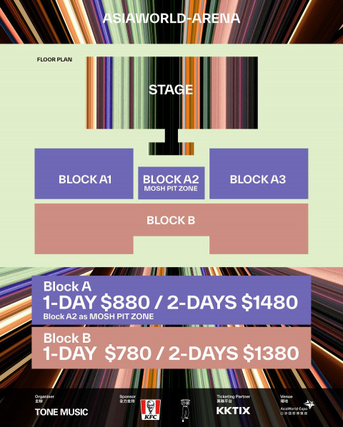 兩日門票:BLOCK A1/A2/A3|HK$1480、BLOCK B|HK$1380