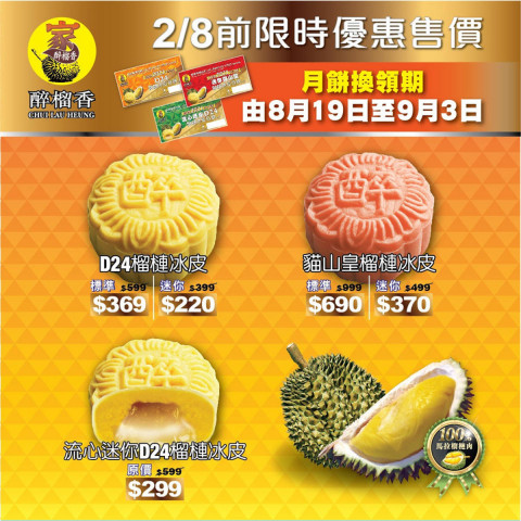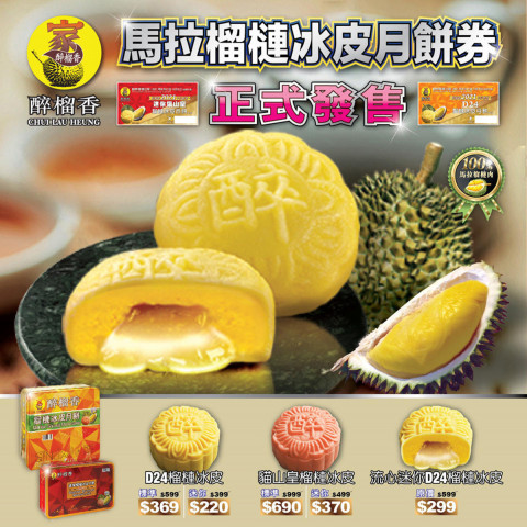 月餅款式眾多,但非傳統餡料之中,以榴槤最受歡迎!除了冰皮+啖啖果肉,近年榴槤月餅仿如傳統月餅,一樣有不同口味,例如流心、竹炭冰皮、法式千層內餡讓榴槤與抹茶、咖啡、芒果等混合,不止衝擊你的味覺與嗅覺,賣相亦愈來愈靚,擺脫老土感覺。