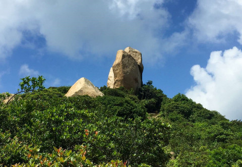 馬鞍山的花崗岩下,蘊藏了磁鐵礦和赤鐵礦,當地在1906年已有開採鐵礦的記錄,直至1976年結束採掘,只要用磁鐵一吸,不少地方還能吸起磁鐵礦砂。當年礦場聚集了礦工和家人在山上定居,亦即是今日的馬鞍山村,村內的學校及教堂早已停運,這些建築群後來活化為鞍山探索館,帶你回到一個世紀前的採礦歲月,起步前不妨在這裡認識馬鞍山的歷史。郊遊徑初段需捱過漫長的上坡石階,但還是值得的,因為盡頭就是昂平草原。山邊的觀景台能俯瞰山下的西貢市,以至牛尾海一帶的島嶼,或遠至西貢東郊野公園的萬宜水庫,不少人在昂平營地露營就是為了這裡的壯麗日出。假日還有一頂又一頂滑翔傘在此起飛,在山谷間自由翱翔。如在深秋時分登上旁邊的大金鐘,更可一睹往南伸延的整片金黃色大草原。草原盡處就是以石砌成的古道,途中有一片植林區種滿台灣相思。台灣相思是本地常見的植林樹種,除了適應力強用於綠化貧瘠山野,其樹身燃點高,而且經歷山火後亦能迅速復原,能構成重要的防火綠帶,阻止或減慢山火蔓延。