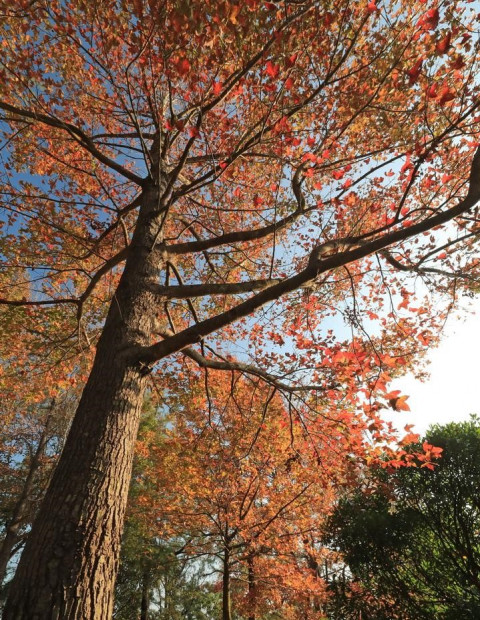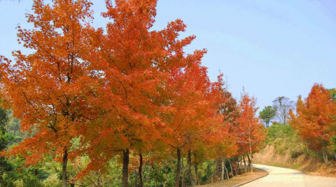 香港山野的面貌隨季節轉變,大欖郊野公園大棠的一列楓香林,每到冬天葉子便由綠轉黃,再轉紅。原來葉的細胞除了含有葉綠素外,亦含有呈黃色的胡蘿蔔素及紅色的花色素苷。秋天的天氣乾燥,在寒冷的氣溫及強光的照射下,葉綠素會加速分解,而葉細胞則增加製造花色素苷,形成觧紅的樹葉。楓香不只好看,拾起三裂形的落葉在手中搓揉,會有淡淡的蘋果香味。楓香在中醫界一樣有名,除了葉子有清熱解毒之效,中醫稱為「路路通」的果序及藥名「白膠香」的樹脂均可入藥。追楓之餘,你也別錯過從山徑遠眺元朗平原的景色。