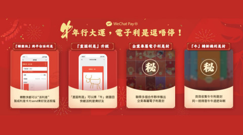 有收藏嗜好的你,就更不容錯過派發WeChat Pay利是,因為今年有「牛」轉新機隨機抽利是封套活動。用戶首次透過「支付」、「優惠專區」進入活動頁面,即可獲得抽利是封套機會一次,並可隨機抽出新潮趣緻牛年行運利是封套一款。每日最多可獲抽獎機會三次。成功集齊五款牛年利是封後,即有機會抽出「特別款」封套。