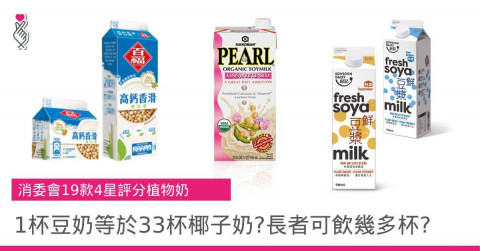 消委會19款4星評分植物奶丨1杯豆奶蛋白質含量等於33杯椰子奶?長者每日需飲幾多杯以攝取足夠蛋白質?