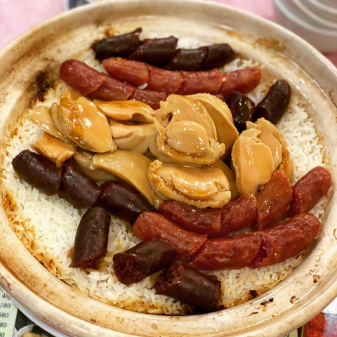 這道四人分量的「臘味鮑魚香菇煲仔飯」適合一家大小食用,煲仔飯內有齊安記的溏心鮑魚、臘腸、膶腸、厚花菇及元貝,用料上盛,只要準確控制好煲仔飯的烹調時間和火候,一煲暖笠笠又好味、飯焦香脆可口的「臘味鮑魚香菇煲仔飯」出品隨時更勝大牌檔出品。