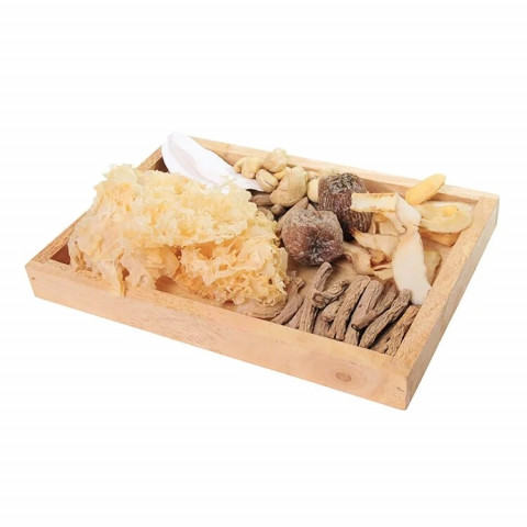 特色:黨參有補中益氣,常用於脾肺虛弱之時,配合健脾開胃的淮山、清心潤肺的麥冬、強精補腎的雪耳、強腎潤膚的腰果、潤肺養肝的蜜棗,有健脾益胃,強肺防病之效。