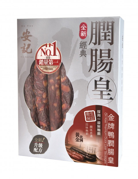 西式熱狗大家經常食到,其實中國人也有熱狗,還可以用來製作煲仔飯,保證令你意想不到。先將一孖安記膶腸皇隔水蒸至半熟,再分別放入兩條安記即食鮑汁海參裡面,含有豐富蛋白質、具有滋陰補腎功用的海參肉質細嫩,再包著膶腸皇,海參完全吸收膶腸皇中的鴨膶和玫瑰露酒的精華,一啖咬下,做到海參外軟、膶腸內脆的口感。飯面旁邊放上安記即食鮑汁花膠和臘肉碎,滋補花膠配上半肥瘦的臘肉碎,口感豐富有層次。