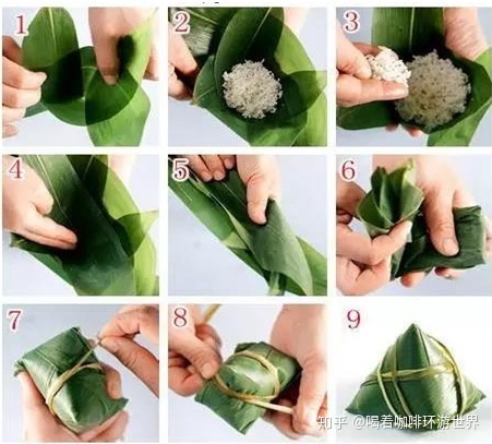 中國人包粽子的方法有很多,包粽子也是一門學問,最怕是粽子包得不好,煮粽時粽葉散開。一般包起來像金字塔般、五角形的外型最美觀,一些售賣粽子的老字號和酒樓老師傅都沿用這種錐形包法,因為它的體積比一般粽子大,可放入更多餡料,其他坊間常用包粽子的方法還有平四角形、三角形和牛角粽,以下先以最傳統的廣東鹹肉粽作示範,為你介紹不同包粽方法。