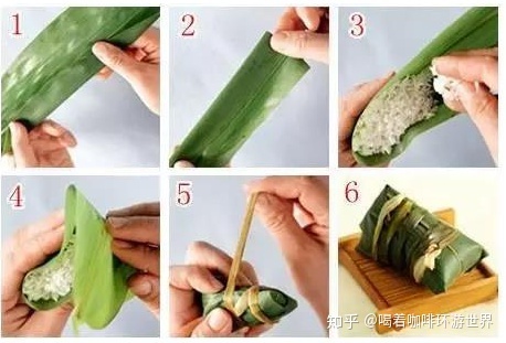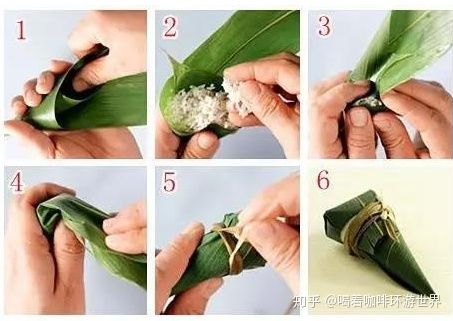 如果覺得五角形的粽子很難學,甚至試了多次都未能成功,不妨試一試這種平四角形的簡易包粽法,包粽所花的時間也縮短不少。