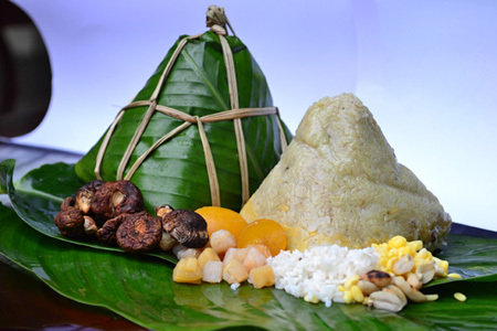 三角粽的形狀比較好看而且特别,可以製作成甜、鹹兩種口味,蛋黃、叉燒、蜜枣都是不错的餡料。