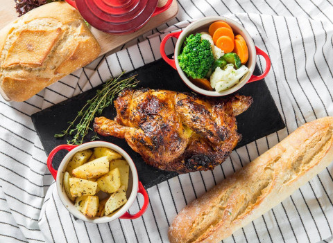 聖誕主角(餐檯上)當然是火雞!人氣法式烤雞店La Rotisserie,以特別的法式旋轉燒烤方法,將雞隻在旋轉架上烤煮一小時,令燒雞皮脆而雞肉多汁又滑!二人食用可考慮1/4、1/2或全隻法國燒雞($58/$98/$178),再加配菜及甜點(例如甜薯栗子炒四季豆、松露巴馬臣芝士薯蓉和朱古力蛋糕),又或二人燒雞/鴨套餐,價錢是$148或$168,十分化算!再想有聖誕氣氛,有三個節日限定項目:來自法國的「自由放養火雞」、「巴巴拉鴨」和「自由放養火雞」,足夠6-10人享用,售價$438起。