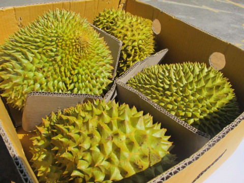 馬來西亞「貓山王」榴槤一年有兩季當造,分別是六月至八月,以及十一月至翌年一月。要揀真正及最靚的「貓山王」,例如 D24 ,它們的榴槤刺會比較尖和幼,再看看底部有一個很明顯、褐色的五角星形,代表有五瓣果肉,星形位置會比較禿,沒有榴槤刺的。