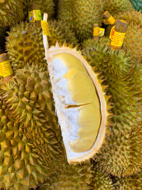 泰國「金枕頭」榴槤一般體積比較大,尾部有個尖位,味道清淡但爽口,適合初嘗榴槤人士。由於果農會在未完熟就會收割,收割時榴槤外殻仍是青色,要在室溫放到變黃,甚至外殻爆開才是成熟。怎樣揀選最靚「金枕頭」呢?留意尖刺愈密,即代表愈多果肉,它沒有「貓山王」的味道那麼濃郁,味道清香,質感爽口,入口帶絲絲香甜,多吃幾件也不會膩。