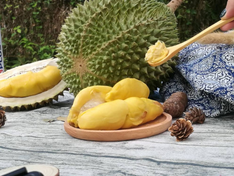 榴槤大多產自馬來西亞及泰國,今年有「印尼火山」榴槤首度來港,產地來自爪哇、峇里島及蘇拉威西島,六月至七月是榴槤當造期。「印尼火山」榴槤的特色是肉厚核小,達到 8:2 肉核黃金比例,口感軟綿夠滑,入口帶淡淡回甘,味道較清甜。假如你吃慣了馬來西亞及泰國榴槤,今年不妨一試「印尼火山」榴槤。