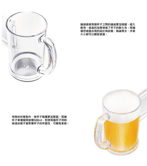 你又忙,爸爸可能更忙,如果有機會聚首一堂暢飲一番,爸爸肯定比拾到黃金更開心,這款「父子同甘共苦雙人啤酒杯」其實是兩隻啤酒杯,中間連接著一塊膠板,當一人拿起酒杯飲酒時,另一人都要配合飲酒,由於兩隻啤酒杯是相連的,二人飲酒的速度和喝的量都必須相同,才不會滴漏。一於買回去與爸爸暢飲一番,看看你們是否酒吧的最佳拍檔。(注意飲酒過量危害健康,未滿18歲人士嚴禁飲酒)