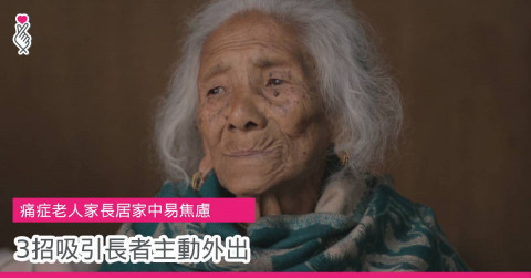 受痛症困擾的長者因各種痛楚而足不出戶,長期被困家中或老人院,令到情緒不安,很易產生焦慮症狀,加速身體退化又再使痛症加劇,形成無限輪迴,要終止這個惡性循環,可以由減輕痛症,增加長者外出機會開始。本文介紹三招吸引長者主動外出!