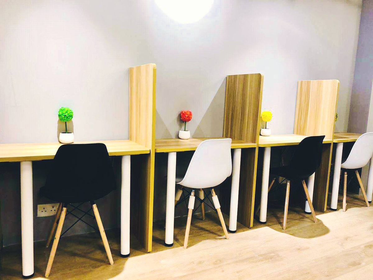 Desk-one於香港有旺角、銅鑼灣、荃灣有分店,並有較高級、位於灣仔的Glue及五星級酒店改裝的北角The Private Suite,小編這裡介紹是位於山東街的旺角分店。這裡設有閱讀區:懷舊風格的空間設計,融合新穎的特色傢具,在鬧市中保留Cafe般的悠閒感覺;靜音區是自修室式個人座位,採用舊年華的竹籐籬笆間隔,在時間靜止之中,獨享一人之境;私人房有各種房間類型,輕鬆容納不同相聚人數,兼備白板等研討配套,貼合你的交流及教學需要。這裡採用大玻璃引入室外光,配以能夠走動的長型露台走廊,同學悶悶地不妨出外走走,看一看遠景的獅子山。設備方面,同樣有WiFi、儲物、打印、微波爐等,亦有零食飲品、咖啡、花菜等,較特別是提供收費杯麵,方便餓底不用為醫肚而煩惱。Desk-one 推出不同獎賞計劃,每次光顧都會有印花累積以換取小禮品或免費單日通行。
