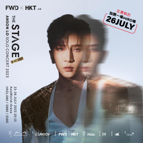 而接力的則有 Anson Lo ,他將於 7 月 23 日至 26 日,於亞洲國際博覽館 Arena 舉行一連四場的《FWD 富衛保險10周年 x HKT 呈獻:ANSON LO “THE STAGE” IN MY SIGHT SOLO CONCERT 2023》,頭三場的 MIRO 及公眾場門票已於日前售罄。至於在 26 日新加開的 MIRO 專場,訂票詳情則稍後會在 MIRROR Official Fan Club 公布。