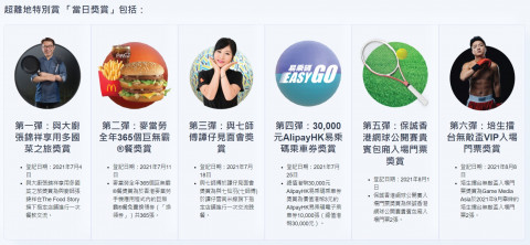 | 其他優惠 | .超離地特別賞:麥當勞全年 365 個巨無霸餐、與七師傅譚仔見面會獎賞等 .登記勁賞:$5,000 額外消費券 .最高消費資數獎賞:$5,000 額外獎賞 .好友「集氣」嬴 iPhone 12 Pro Max |