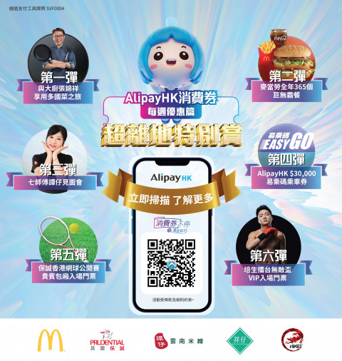 由即日起至 7 月 3 日,到 AlipayHK 訂閱消費券優惠第一手資訊及推廣優惠,即可預留 $30 消費券早鳥獎賞 ($5 禮券,共 6 張),但獎賞只適用於指定商戶。