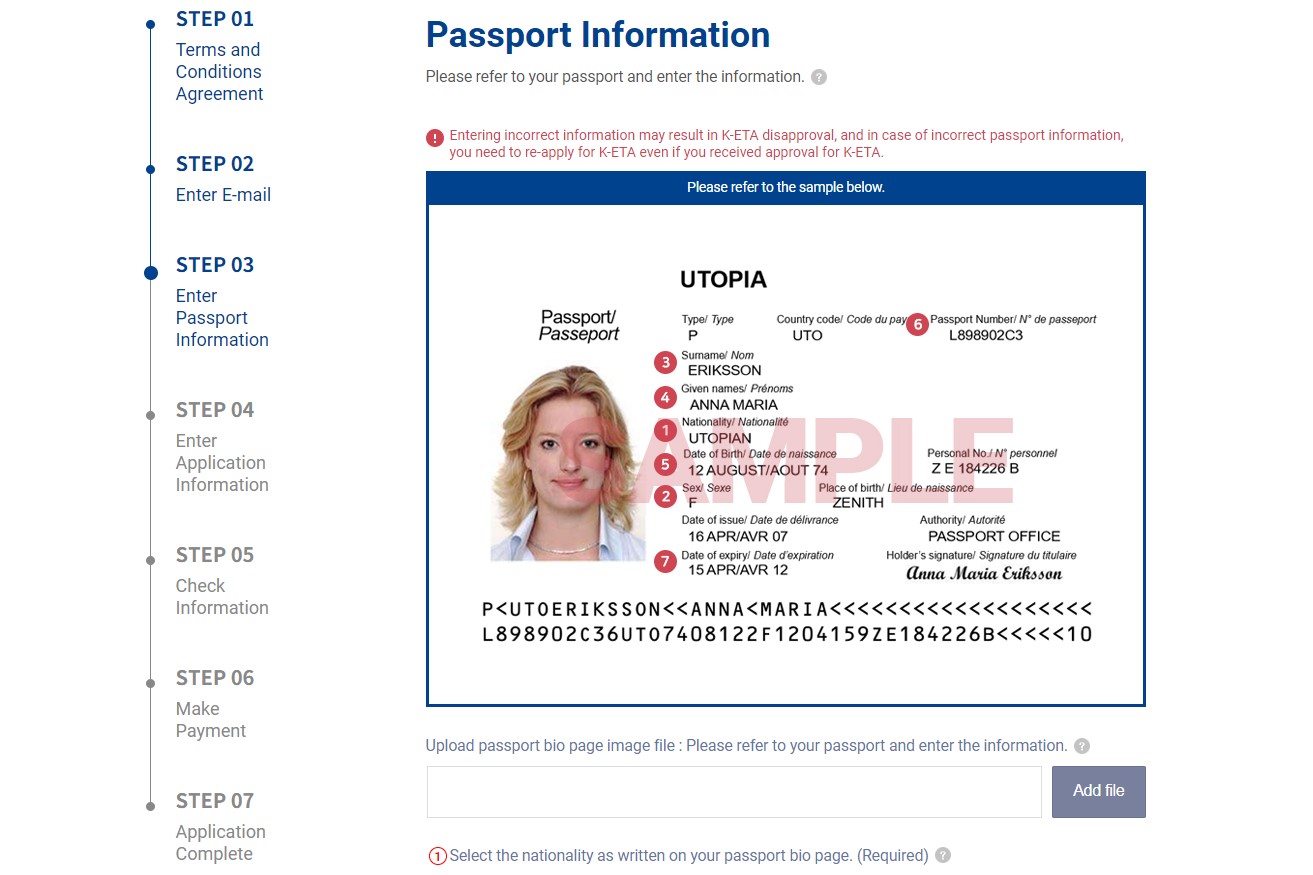 到訪南韓的旅客,需於航班出發前 72 小時通過 K-ETA 官網或手機應用程式申請 K-ETA,批核時間 24 小時起(之後尚需登記 Q-code,詳見下文)。