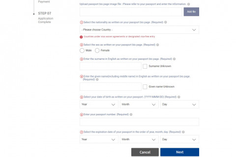 - 步驟4:上傳並輸入護照資料,包括國籍、性別、英文姓名、出生日期、護照號碼及護照到期日等;