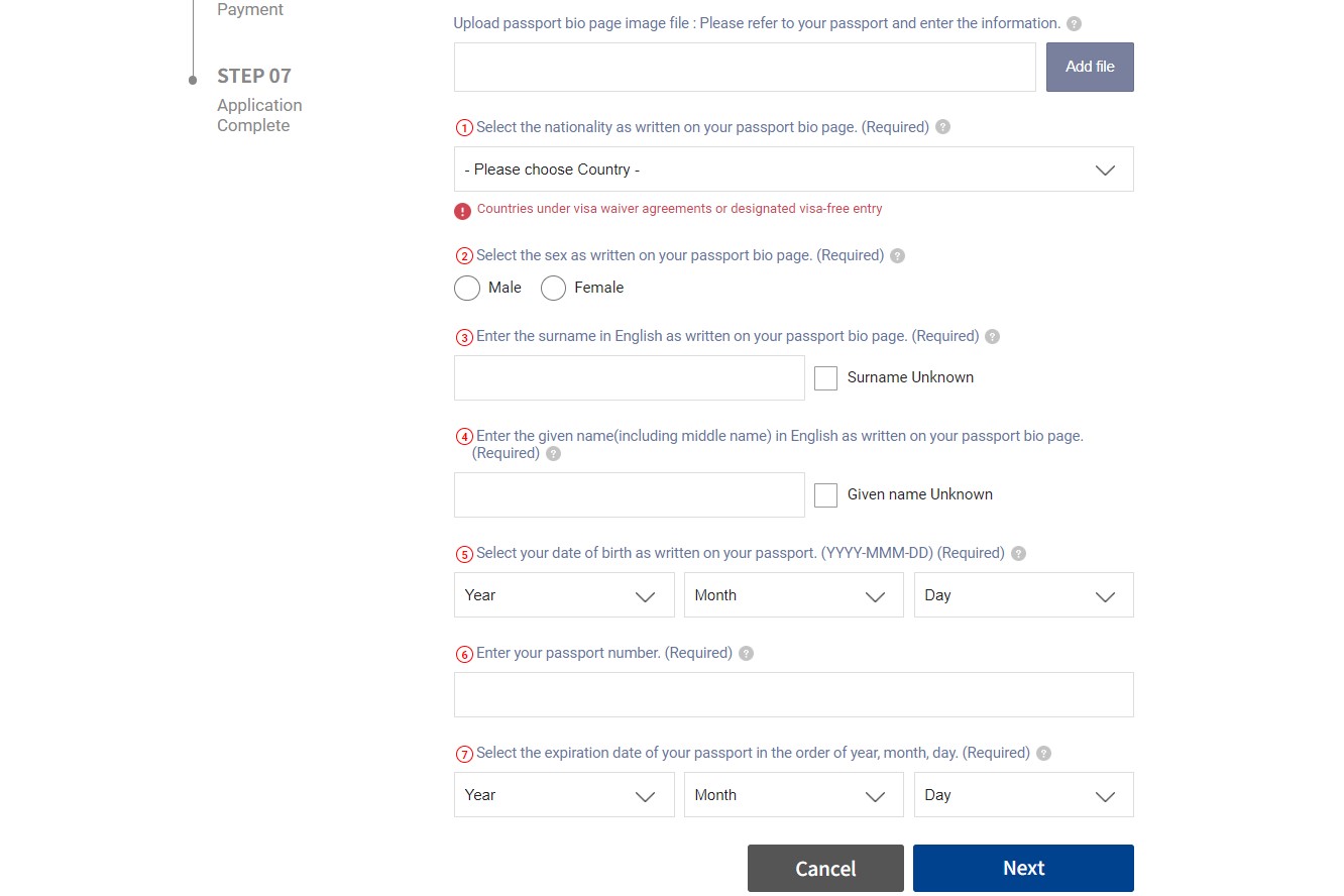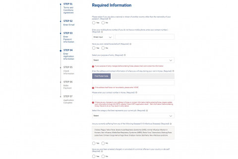 - 步驟7:提供訪韓資料,包括曾否訪韓、訪韓原因,填寫職業、申報疾病及犯罪紀錄;