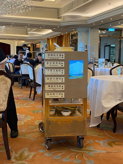 - 簡介:中環大會堂美心皇宮裝修華麗,擁有維多利亞港景色,兼可望到遠處摩天輪。酒樓點心車車前,均有電子螢幕顯示食物,傳統又新穎;