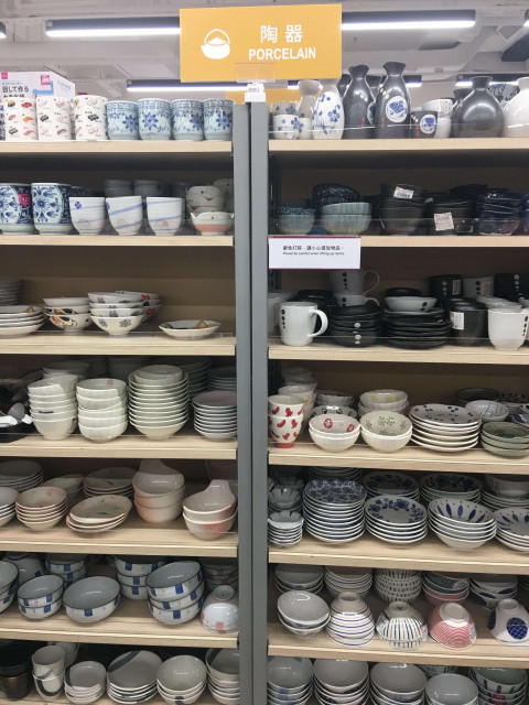 陶瓷二字,包含了陶土製做較粗獷的陶器,及以瓷土或高嶺土燒製,DAISO 的陶器產品品質典雅,碗、碟、茶杯,甚至盛載清酒的器皿造功都一絲不苟。
