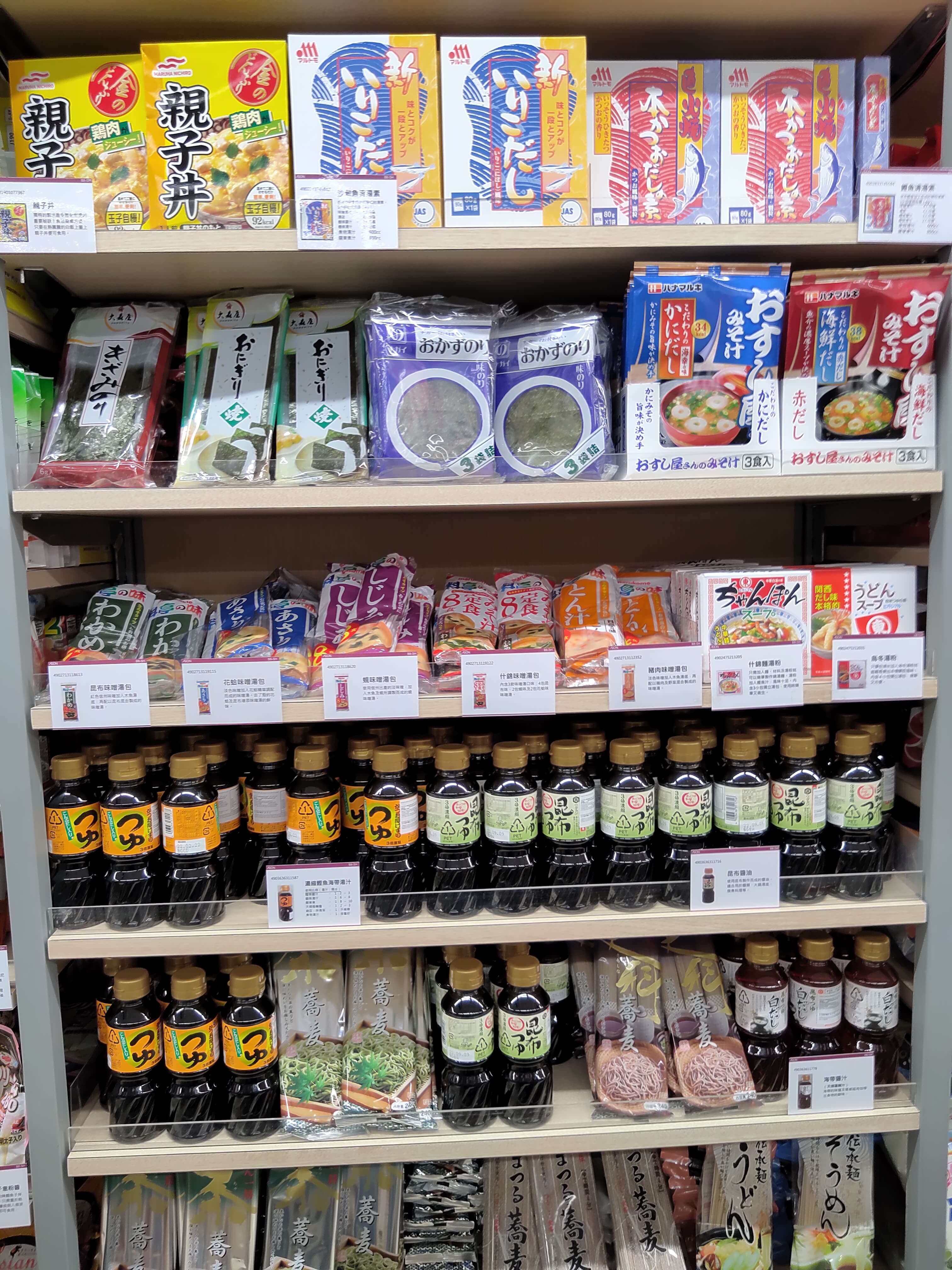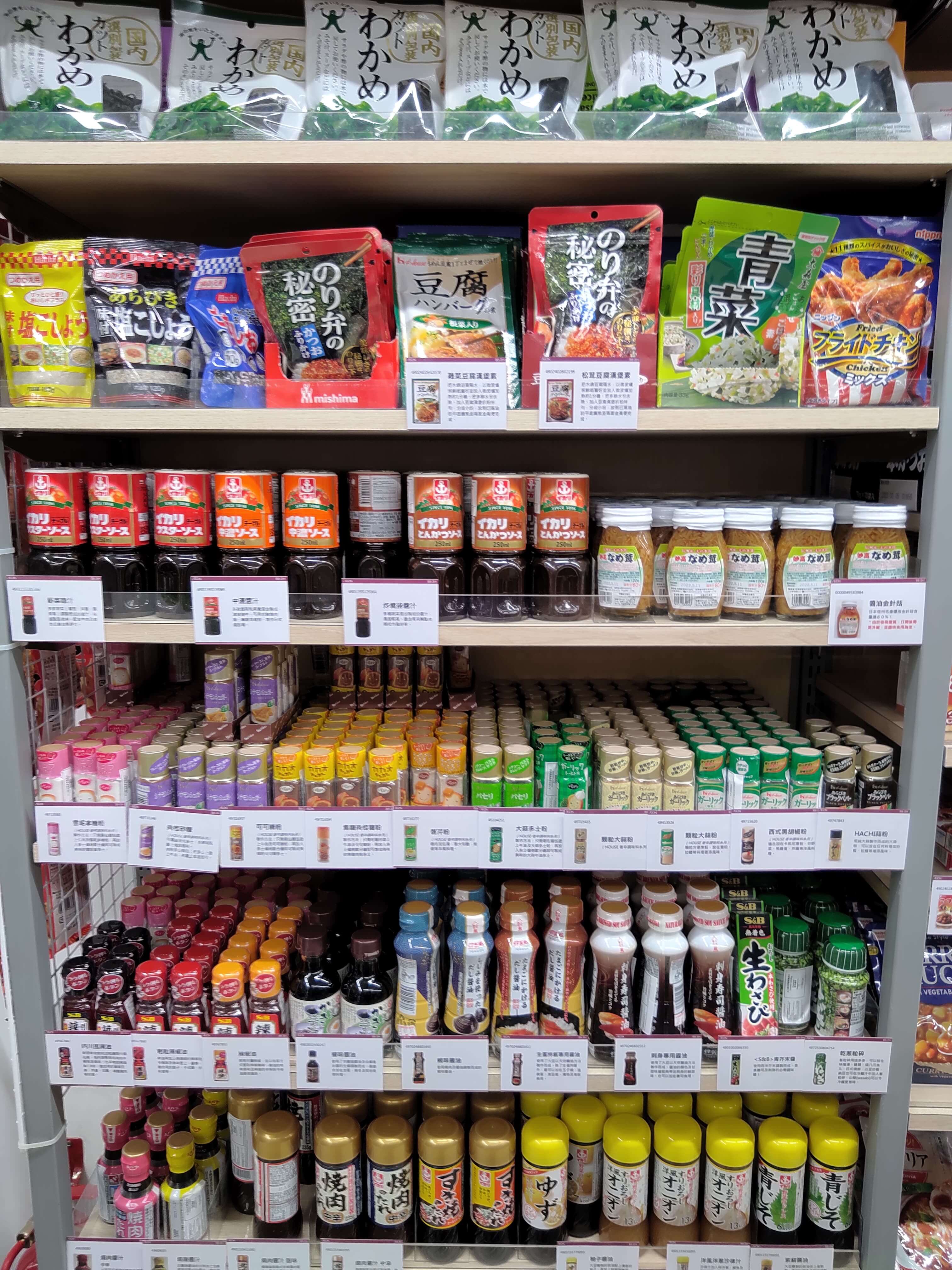 全部日本直送的零食、餅乾、糖果、罐裝咖啡、果汁、波子汽水,還有各式調味料,豉油、咖哩、味僧和山葵,保證令你食得安心。