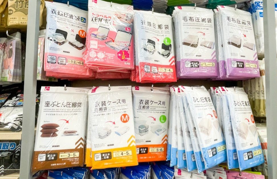 DAISO 真是收納的專家,無論是衣物、毛巾,甚至咕臣的真空技術壓縮袋,大小尺寸都齊備,方便你收藏在床下底或行李箱。另外,由日本直送的大小毛巾質料耐用順滑,花款又齊全,只是抹手布已有十多款任君選擇。