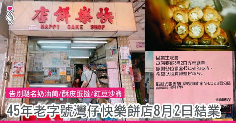 經營了45年的灣仔快樂餅店宣布結業,這家傳統老牌麵包店因為業主收樓,將於8月2日結業,幸好年初新開的馬鞍山分店仍會繼續營業。不過,不少街坊、文青和區外客人都湧到灣