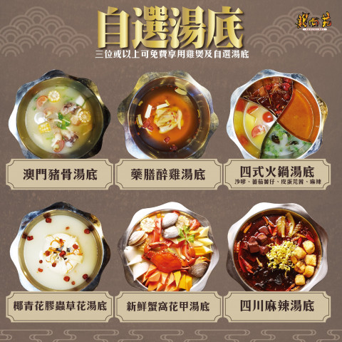 旺角華僑商業中心的新南苑,主打 180 分鐘任食雞煲火鍋。晚市任食套餐有多款選擇,價錢按套餐類別,由每位 $198 的抵食餐,至 $438 一位的至尊餐。火鍋湯底有 6 款,包括澳門豬骨、藥膳醉雞、椰青花膠蟲草花湯、新鮮蟹窩花甲、四川麻辣等,配料亦有 40 多種,例如安格斯牛小排、美國肥牛、鮑魚等,性價比高。